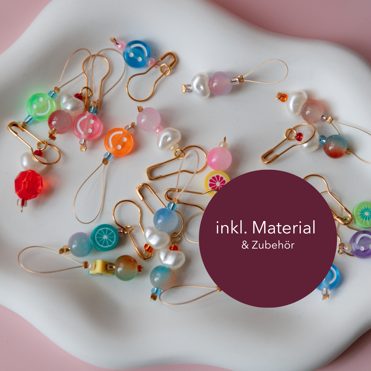 Verbringe einen kreativen Abend und gestalte deine eigenen Maschenmarkierer aus wunderschönen Perlen. Du bastelst dir deine ganz persönlichen Strickaccessoires – perfekt für deine eigenen Projekte oder als liebevolles Weihnachtsgeschenke für deine Strickbesties.