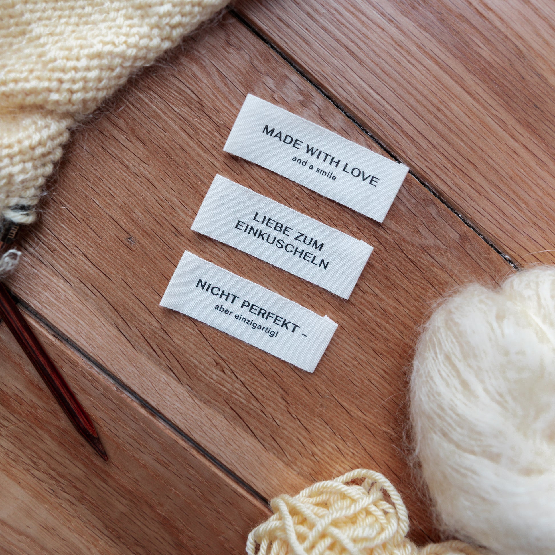 Verleihe deinen selbstgestrickten Pullovern, Schals, Mützen oder Cardigans das gewisse Extra! Diese Labels setzen kleine, süße Akzente und machen jedes Stück zu einem individuellen Unikat. Einfach annähen – fertig!