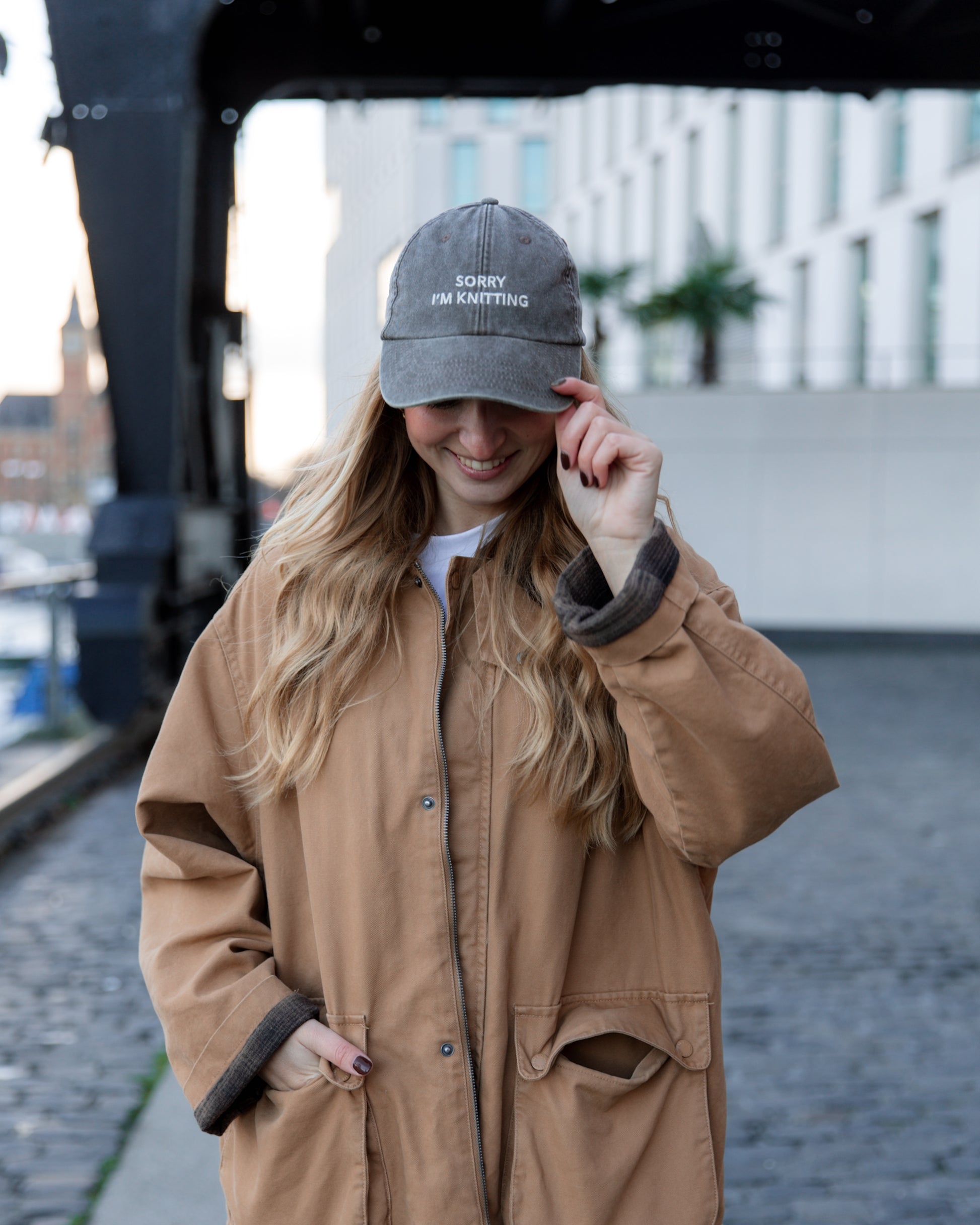 Die „Sorry I’m Knitting“-Cap ist für alle, die lieber in ihr Strickprojekt vertieft sind, als irgendetwas anderes zu tun. Perfect für alle, die sagen möchten: Ich würde ja gerne — aber mein Strickzeug ruft.