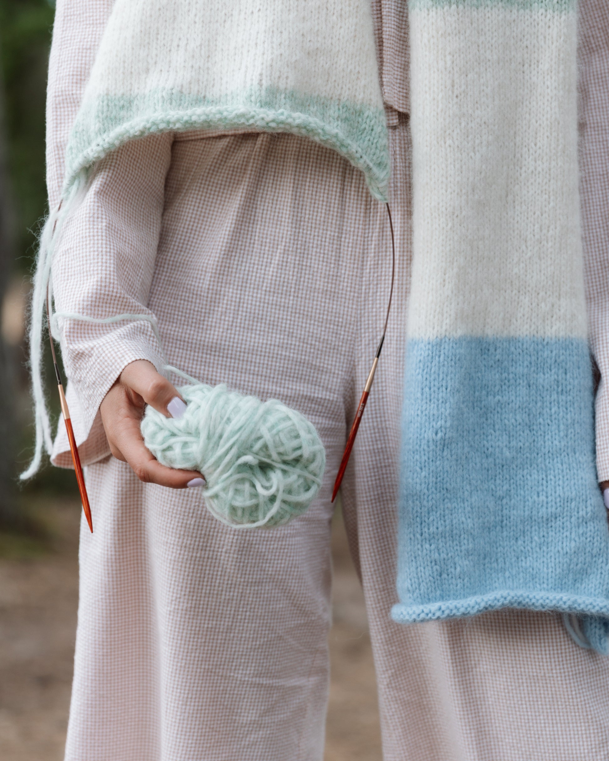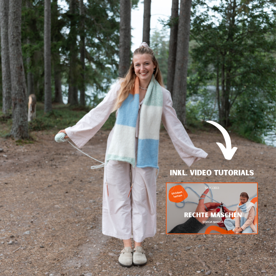 Der Schal wurde bewusst so gestaltet, dass du nach diesem ersten Projekt bestens gerüstet bist, um deine ersten Kleidungsstücke oder anspruchsvolleren Accessoires zu stricken.