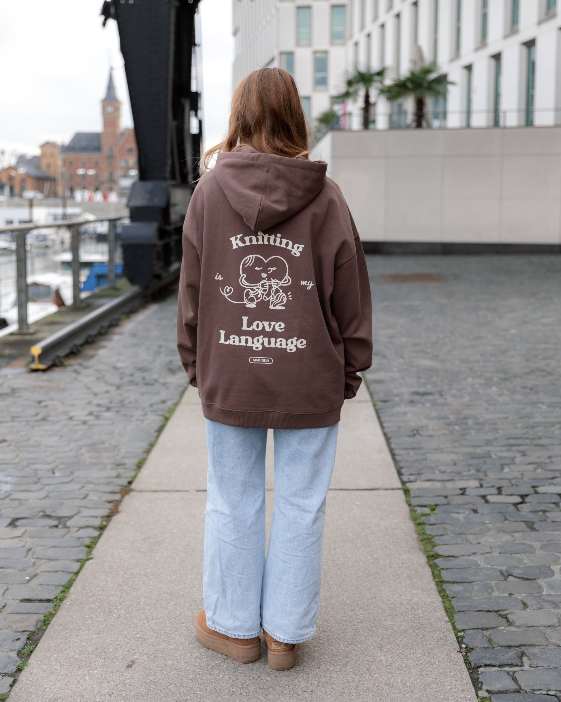 Der „Knitting is my Love Language“- Hoodie ist für alle, die ihre Liebe lieber in Maschen ausdrücken als in Worten. Für alle, die wissen: Ein handgestricktes Teil sagt mehr als tausend Worte – und ein gemeinsamer Abend mit Wolle und Nadeln ist einfach unbezahlbar.