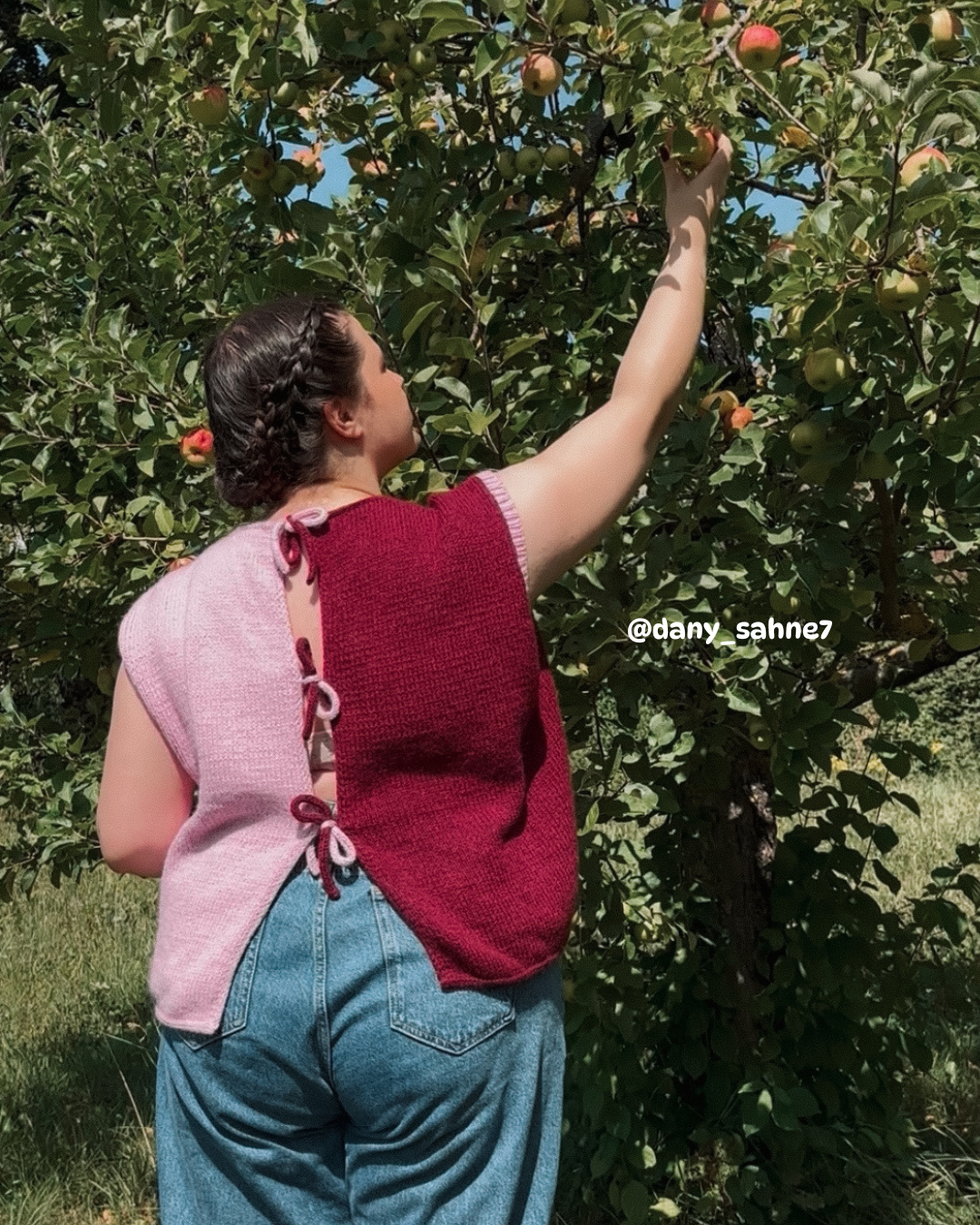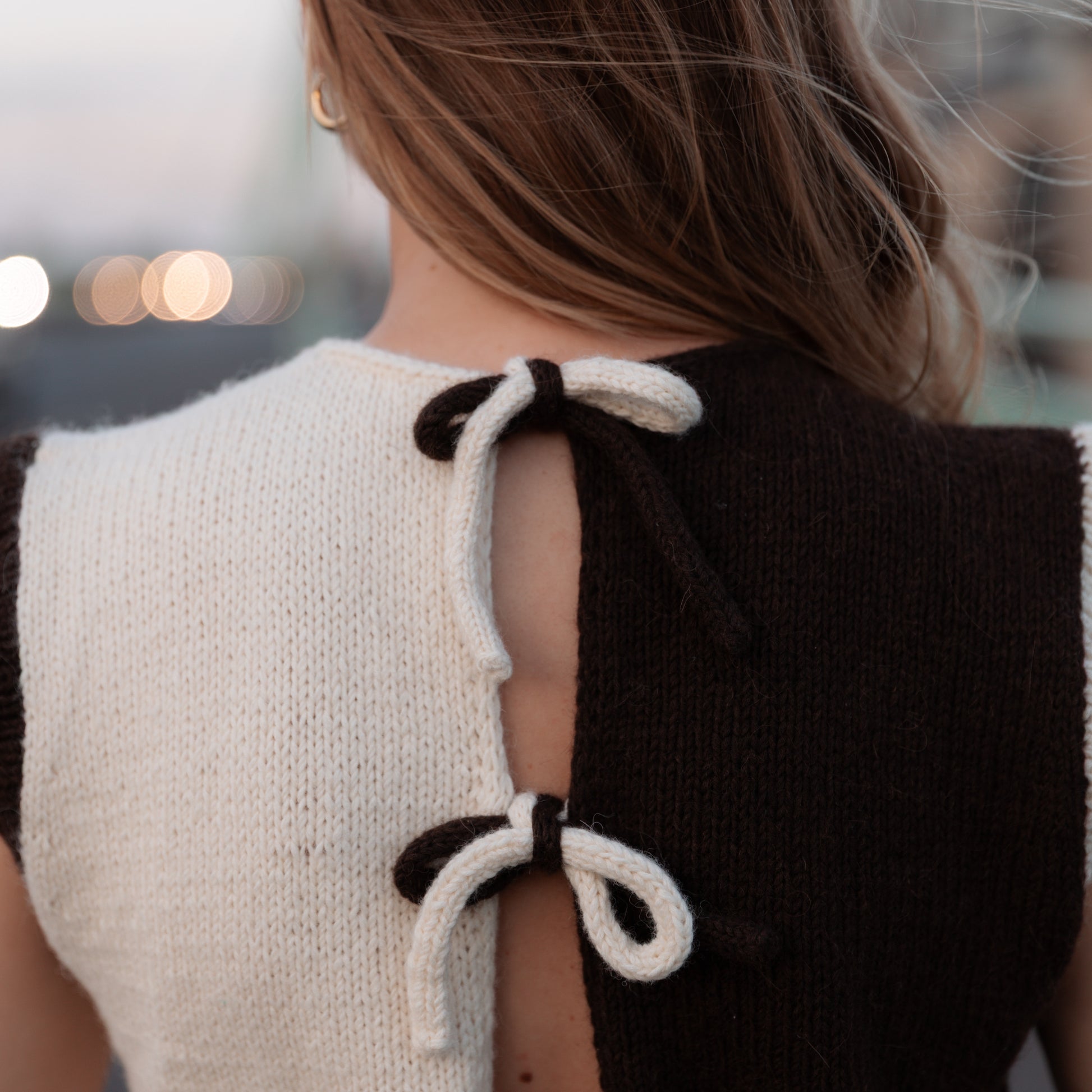 Das TIA Top - easy, fresh und always a vibe. Mit offenem Rücken und coolen Schleifen zum Binden ist das TIA TOP ein echtes Highlight. Der zweifarbige Color-Blocking-Look macht es modern und super vielseitig: perfekt für den Sommer solo getragen oder im Winter lässig über einer Bluse.